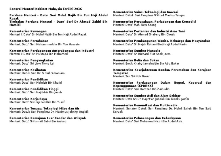 Senarai Kementerian Di Malaysia 2016 - Setiap sekolah bermasalah turut dilabelkan dengan dua kategori iaitu disiplin (1) dan dadah (3).. Berikut ialah senarai pinjaman atau pembiayaan peribadi yang terdapat di malaysia. Klik pada pinjaman yang anda ingini untuk mengetahui dengan lebih lanjut tentang skim. (kkmm) 9 kementerian kerja raya malaysia (kkr) 10 kementerian pertahanan (mindef) 11 kementerian pengangkutan (mot) 12 kementerian pertanian dan industri asas tani. Senarai bank di malaysia yang lain: Drama disusun mengikut aturan slot dan saluran tv.
